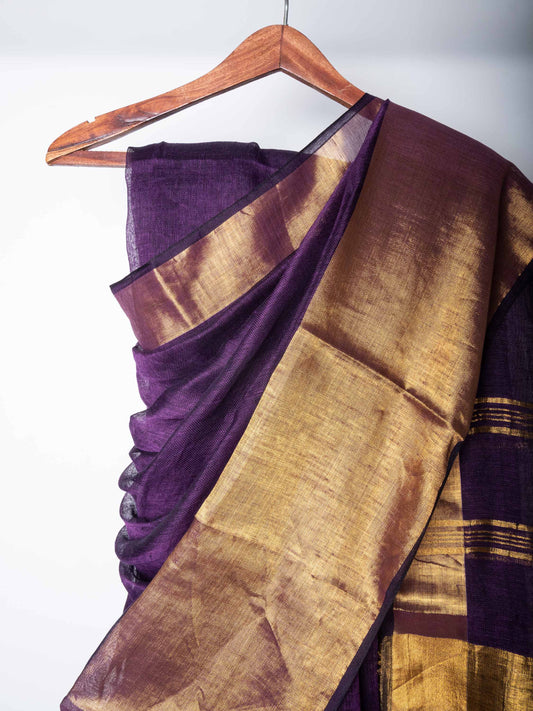 Saffron- Yellow Cotton Dhaniakhali Saree with Black Woven Border
