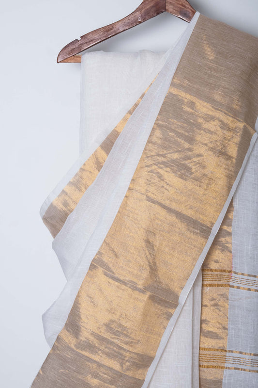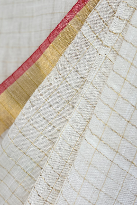 White Zari Check Linen Saree with Zari Palla