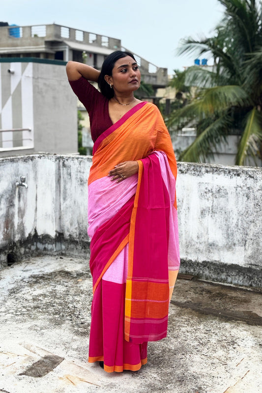 Sold outTricolor Dhaniakhali Cotton Saree
