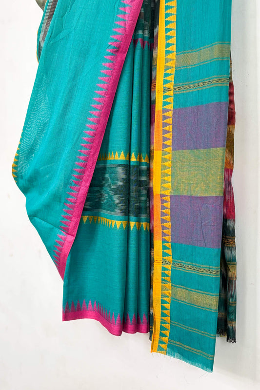 Tute Cotton Dhaniakhali Saree with Woven Ikkat Stries