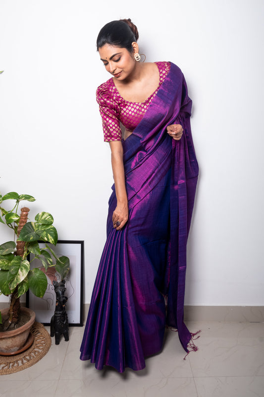 Iridescent Blue-Aqua Green Tissue Linen Saree