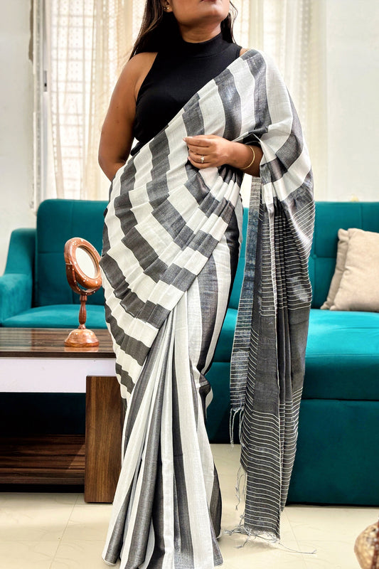 Dreamy White Semi-Tissue Saree with Handwoven Buttis