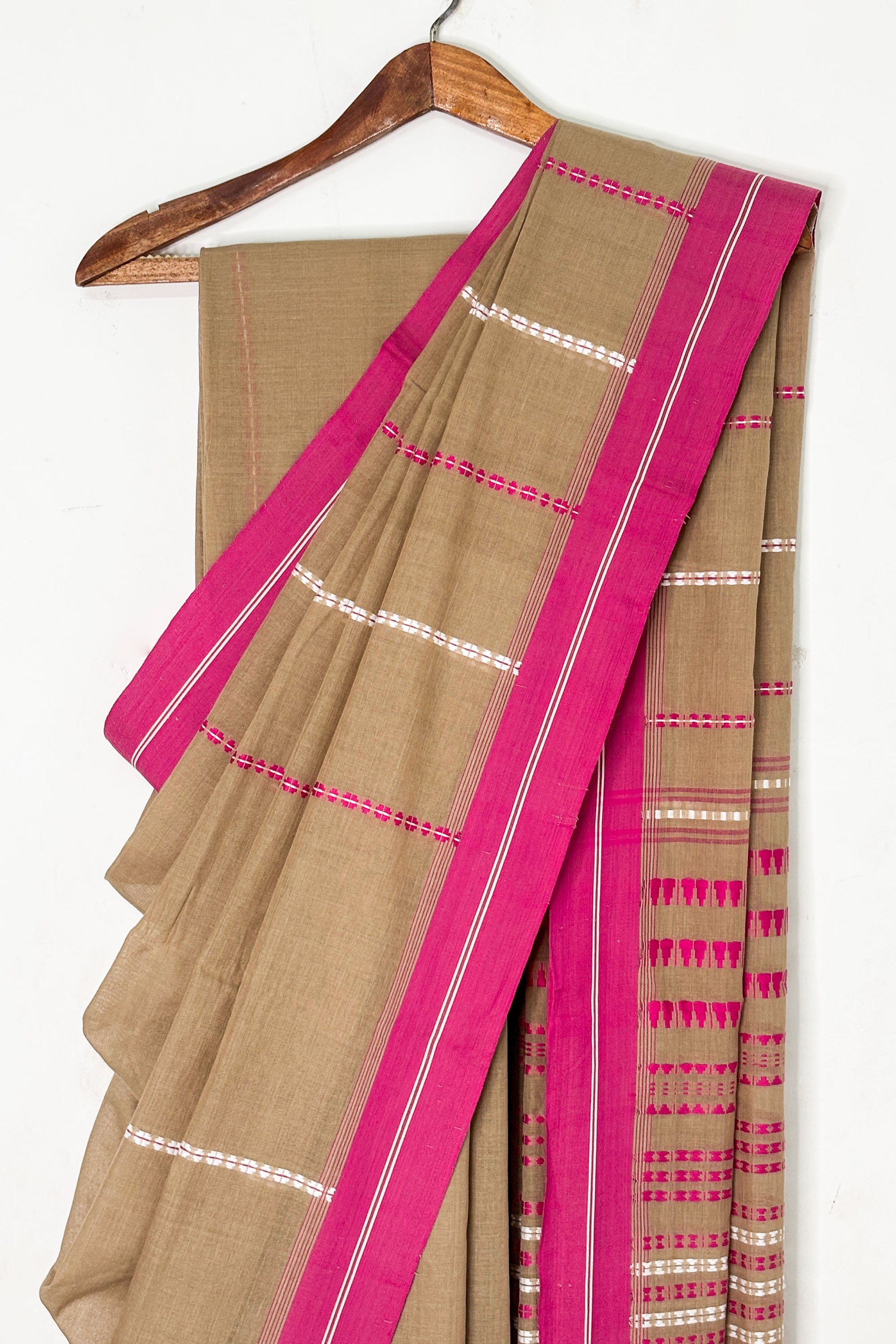 Mud Bengal Cotton Saree with Pink Border